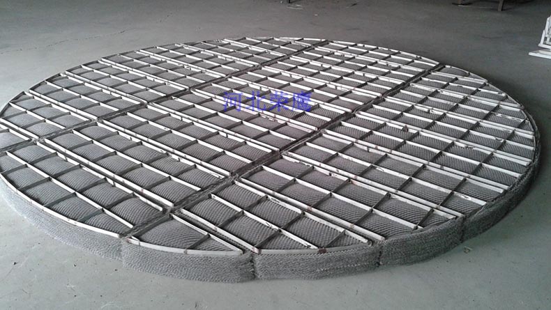 絲網(wǎng)除沫器(又名絲網(wǎng)除霧器)一般是從人孔遞進(jìn)塔器的,人孔和絲網(wǎng)除沫器的上下關(guān)系決定了絲網(wǎng)除沫器的安裝方式。人孔開在絲網(wǎng)除沫器的上方,從上往下遞,這叫上裝式絲網(wǎng)除沫器;人孔設(shè)在絲網(wǎng)除沫器的下方,從下往上遞,這叫下裝式絲網(wǎng)除沫器。二者對于絲網(wǎng)除沫器的元件來說是完全一樣的,只是在支承件上有所不同。